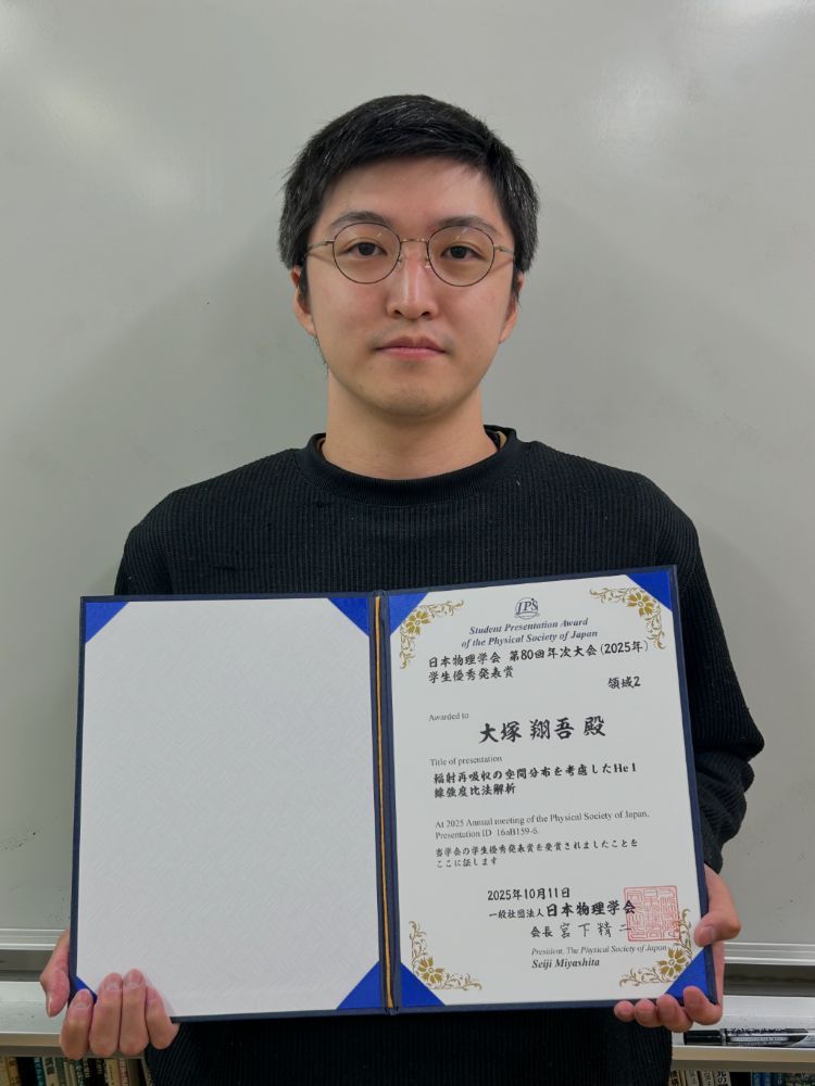 賞 名:日本物理学会 領域2学生優秀発表賞