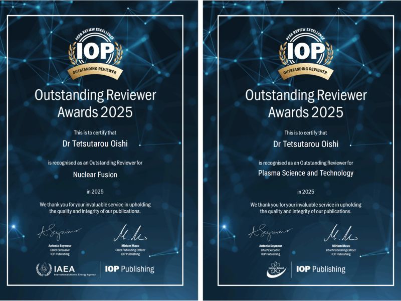 業 績 名:Outstanding Reviewer for ”Nuclear Fusion” and ” Plasma Science and Technology” in 2025